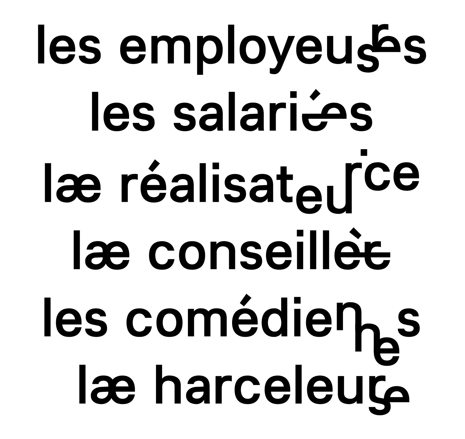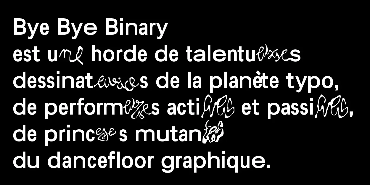 In summer 2021, Alice Gavin services invited Bye bye Binary collective to lead a 3-day workshop at Ballet National de Marseille, directed by (LA)HORDE. The workshop focused on exploring new graphic and typographic forms, particularly experimental glyphs inspired by anthropomorphic and gestural elements.