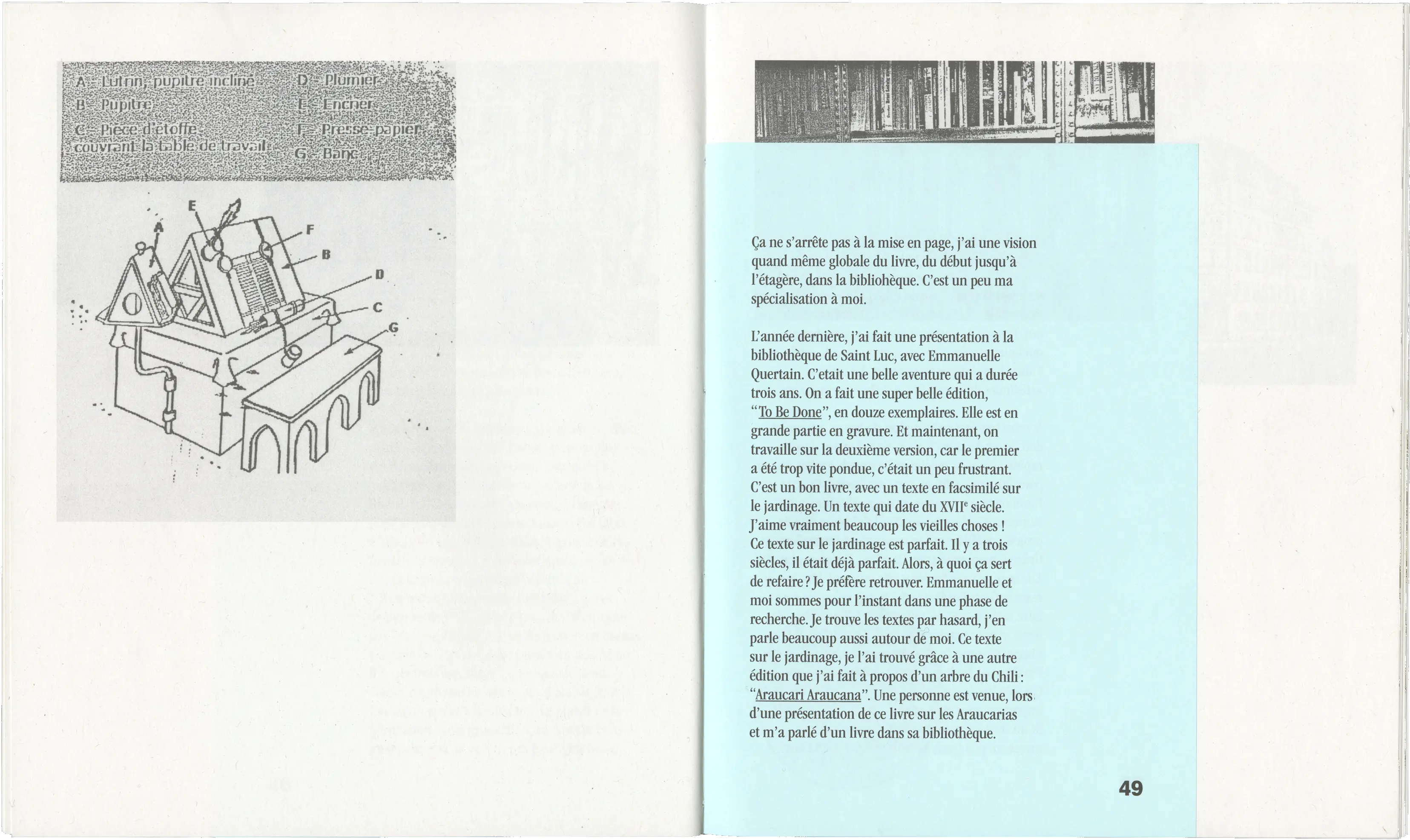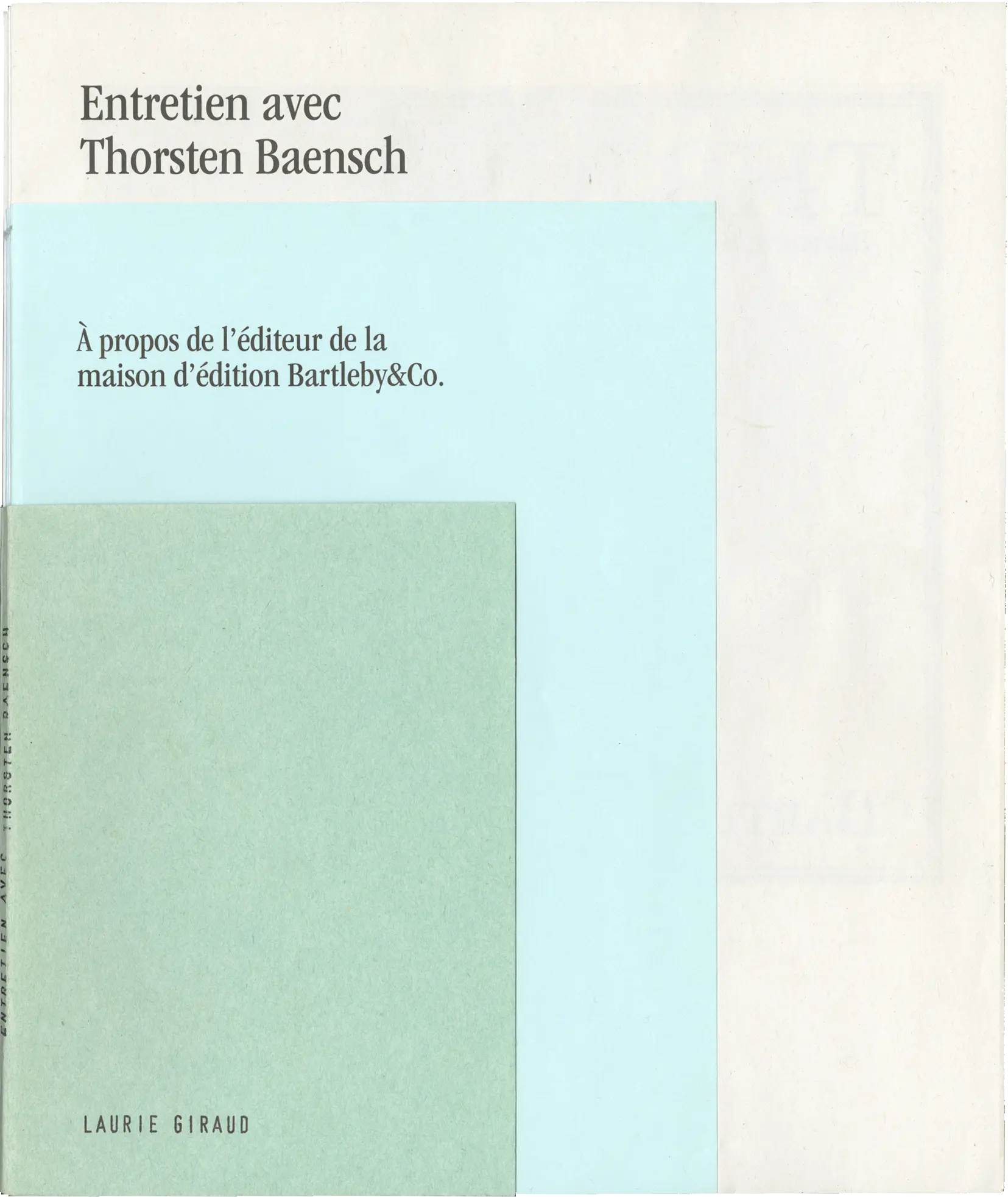 Bartleby and Co. is a publishing house specializing in artist books, founded in 1995 by Thorsten Baensch. The publications vary widely in form, genre and subject matter: they stem from Baensch’s personal work and collaborations. The book « Entretien avec Thorsten Baensch », is designed in echo to this publisher's distinct practice, which is documented and expounded in an interview. This text was also published in the periodical « Le Livre et l’Estampe : Revue Semestrielle de la Société des Bibliophiles et Iconophiles de Belgique. » in 2017. Interview, research, editorial design.