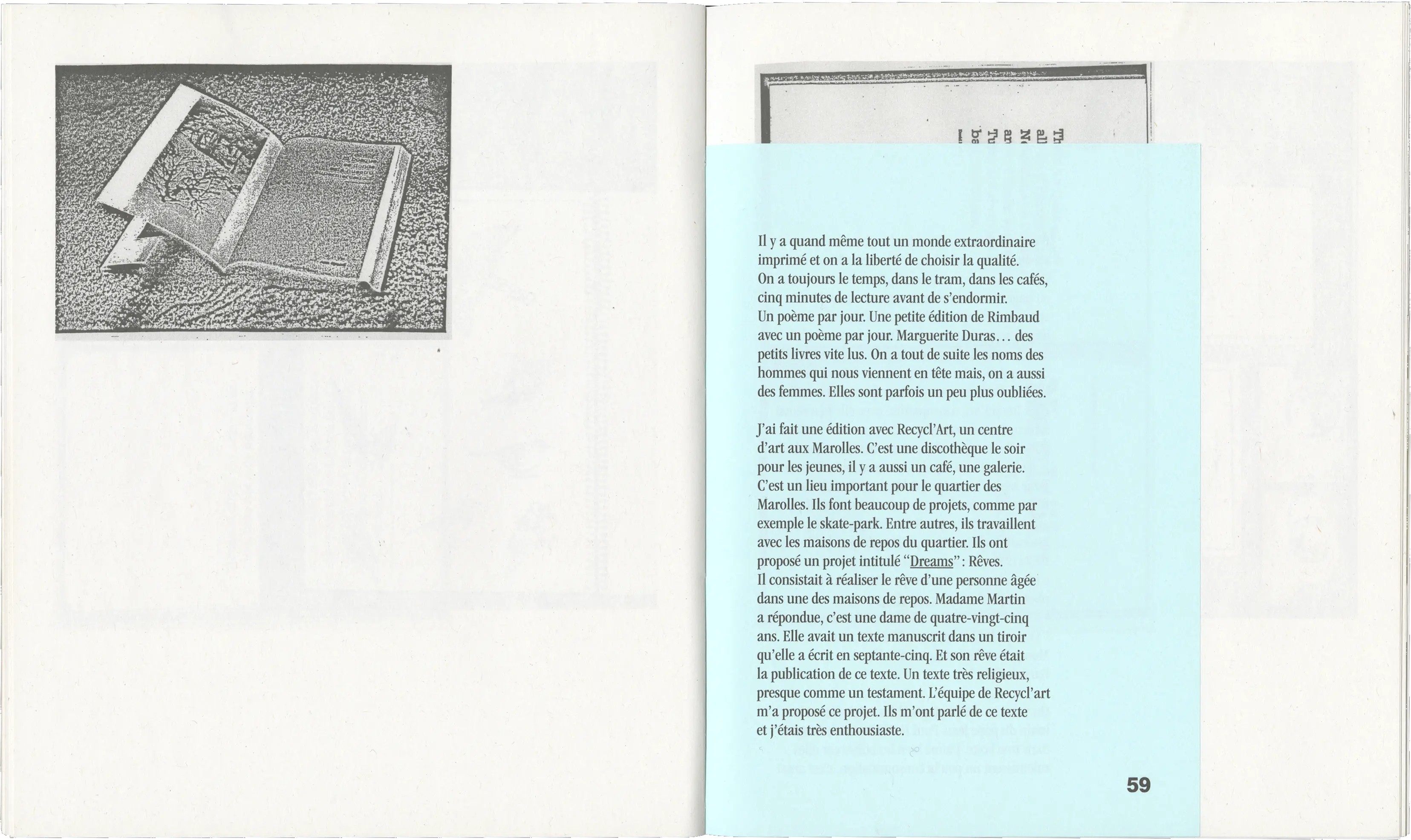 Editorial design and interview. Printing in collaboration with Sarah Hillouz and Marius Escande. Printed in Comcolor, 32 pages, stapled, 50 copies.