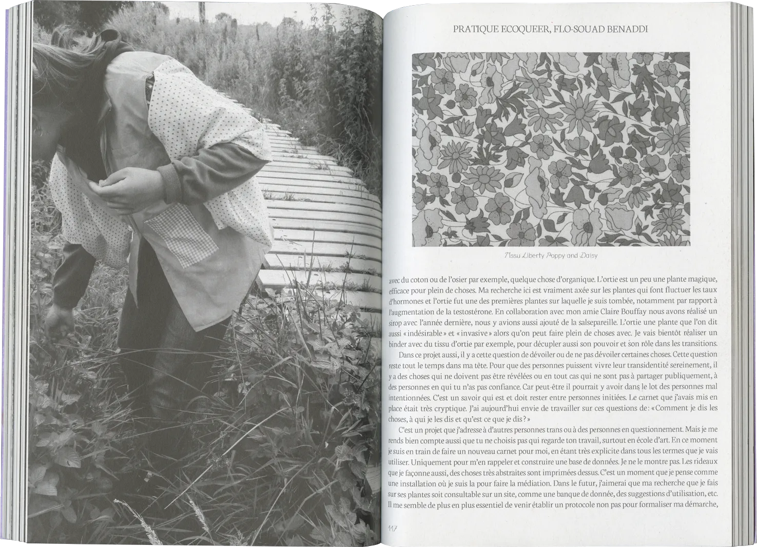 Caring + worlding results from a personal project: a collection of joyful moments and beauties. A personal project to enlight reasons to be optimistic for future. Woven into a book are short reflections, radiant images, excerpts from readings, and interviews with performer Tessa J. Hall, artist Flo* Souad Bennadi, graphic designer + DJ Maroushka Payen, and comic author Justine Sarlat, as represents for Bye bye Binary collective.