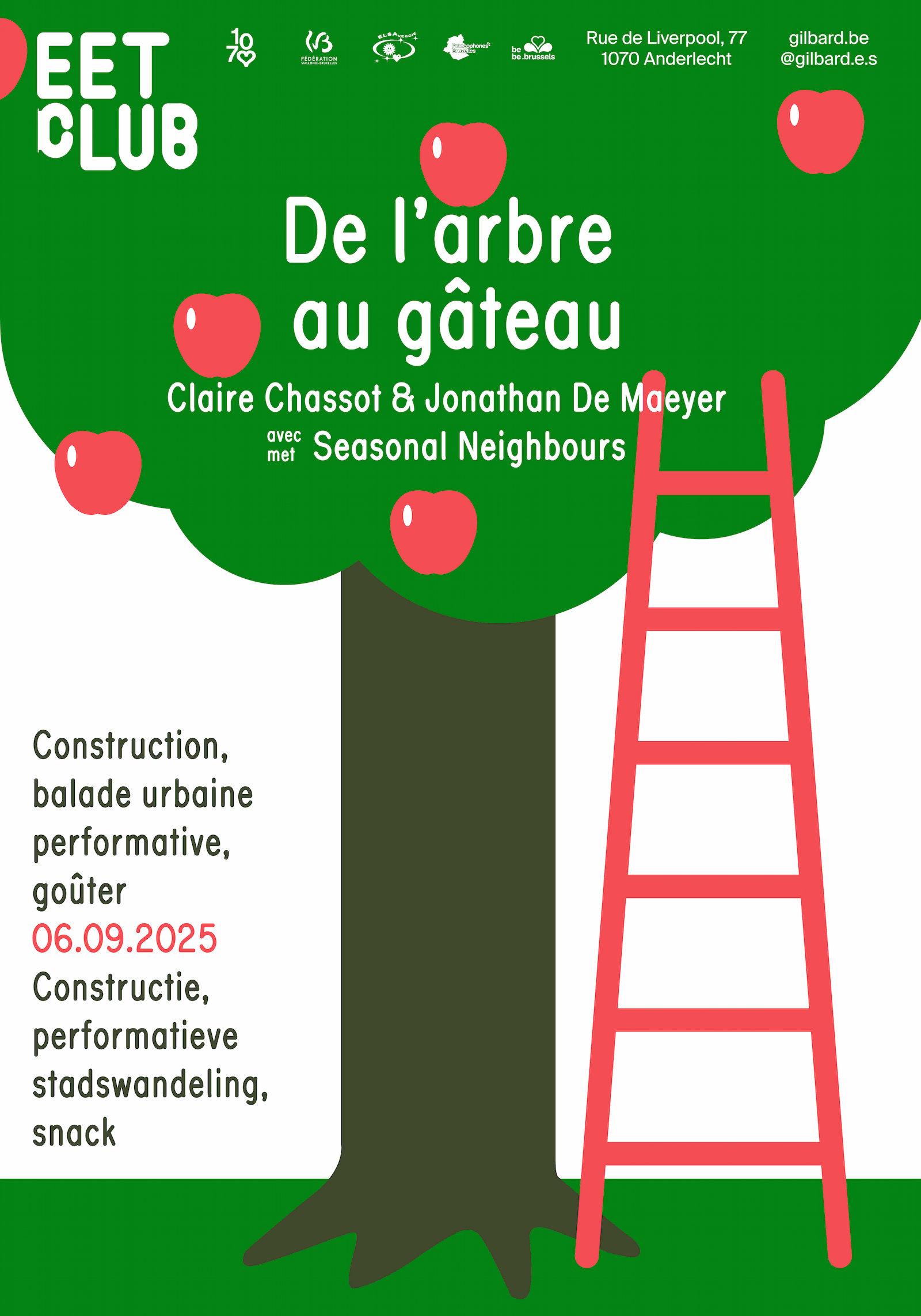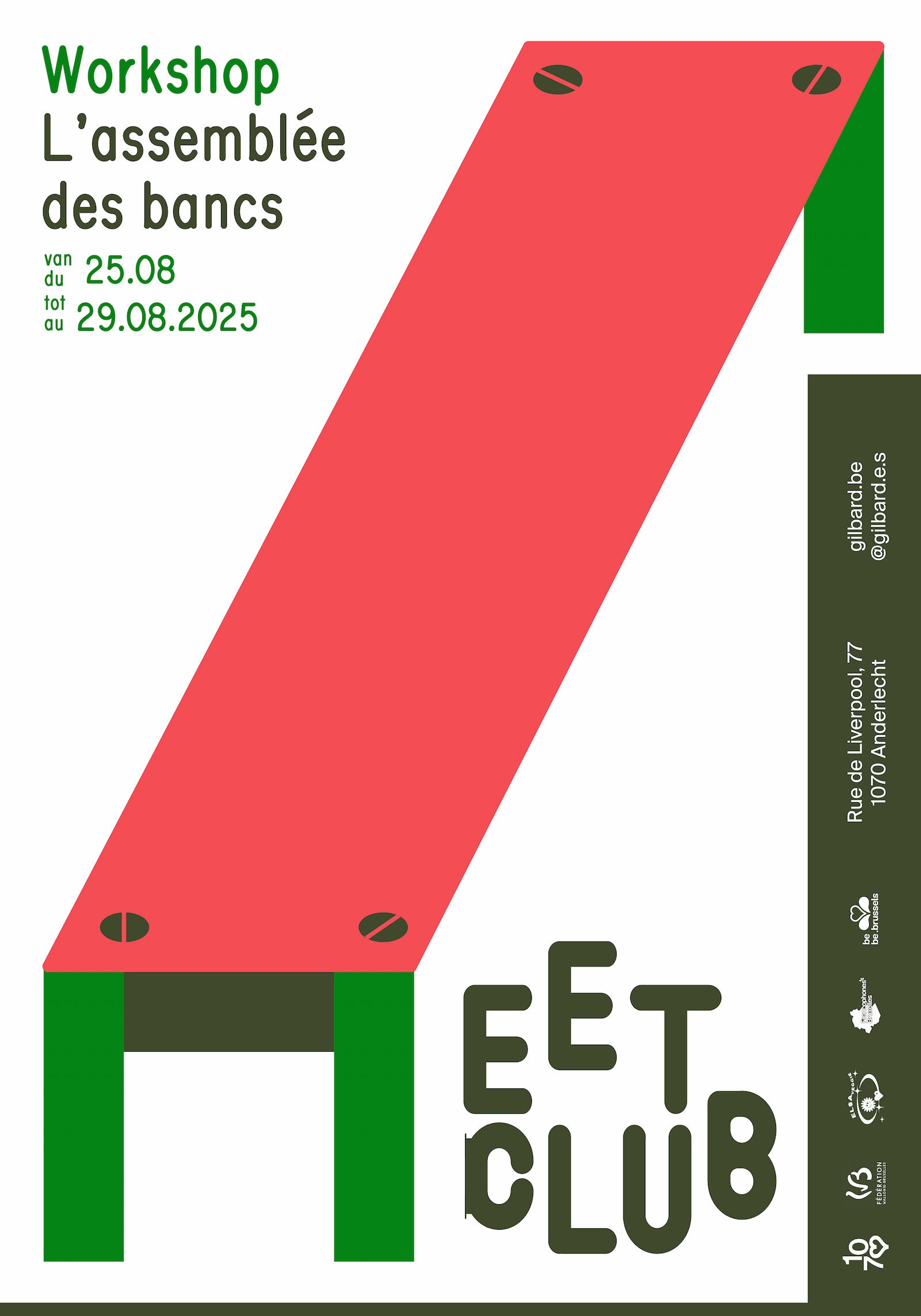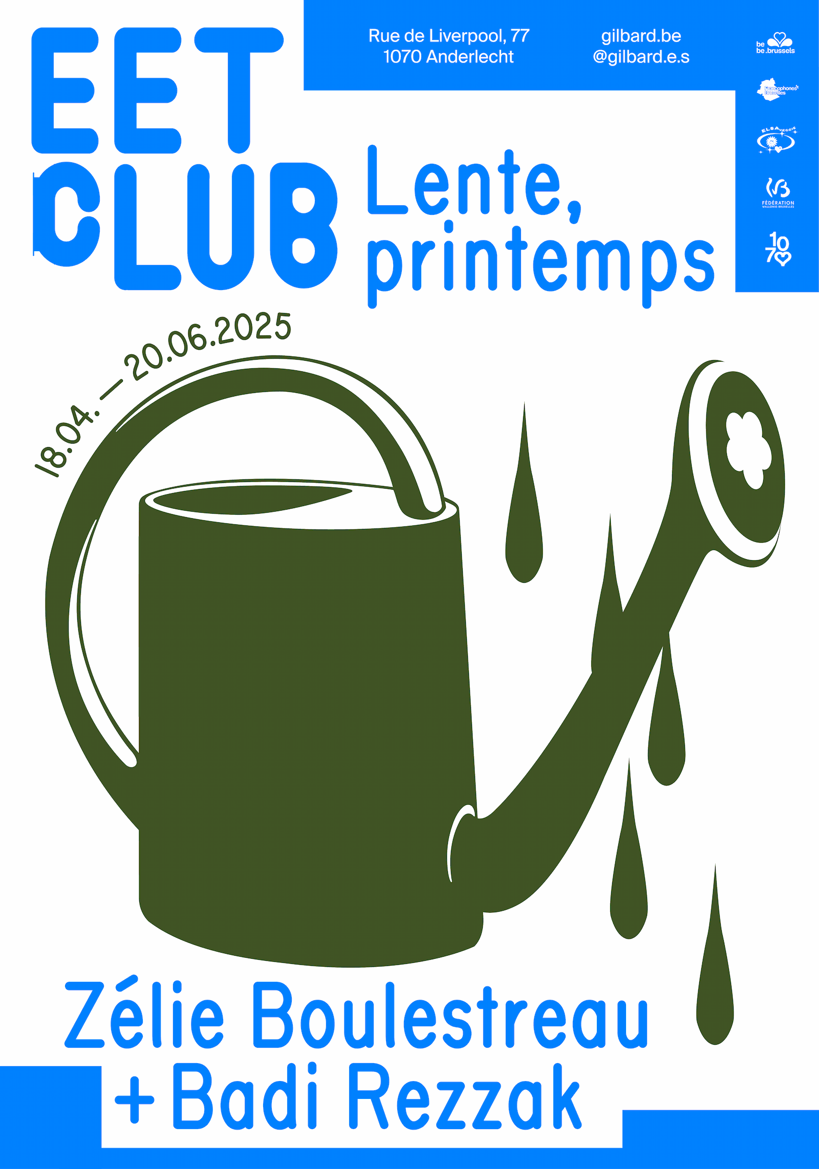 The collective of designers and artists Gilbard, based in Anderlecht, Brussels, works with reused materials to develop locally rooted projects. From March to December 2025, their exhibition space transforms into “EET CLUB,” a gathering and sharing place where food and the seasons serve as the common thread of the artistic program. Several artists and designers are invited to create site-specific, locally engaged interventions.
