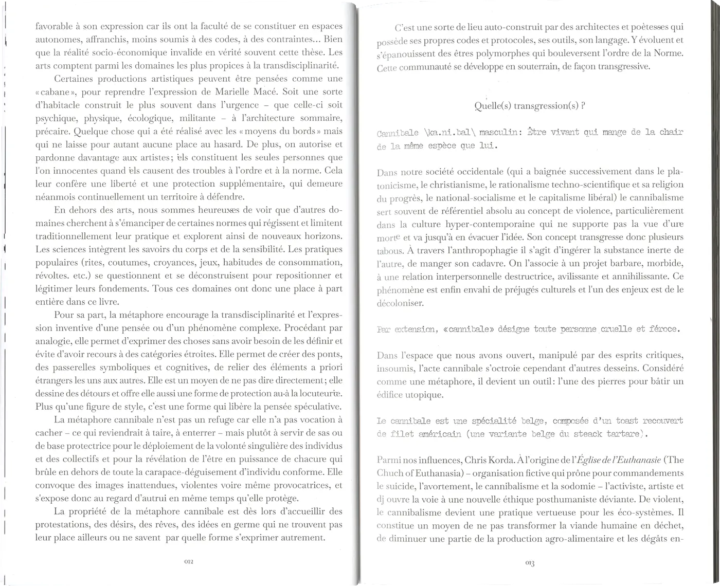 Transdisciplinary digest 'Métaphoriques Cannibales' is featuring around thirty contributors. This book, edited by non-a, is conceived as an invitation to initiate a reflection on contemporary cannibalism. Press kit can be downloaded here. Online purchase here or there.