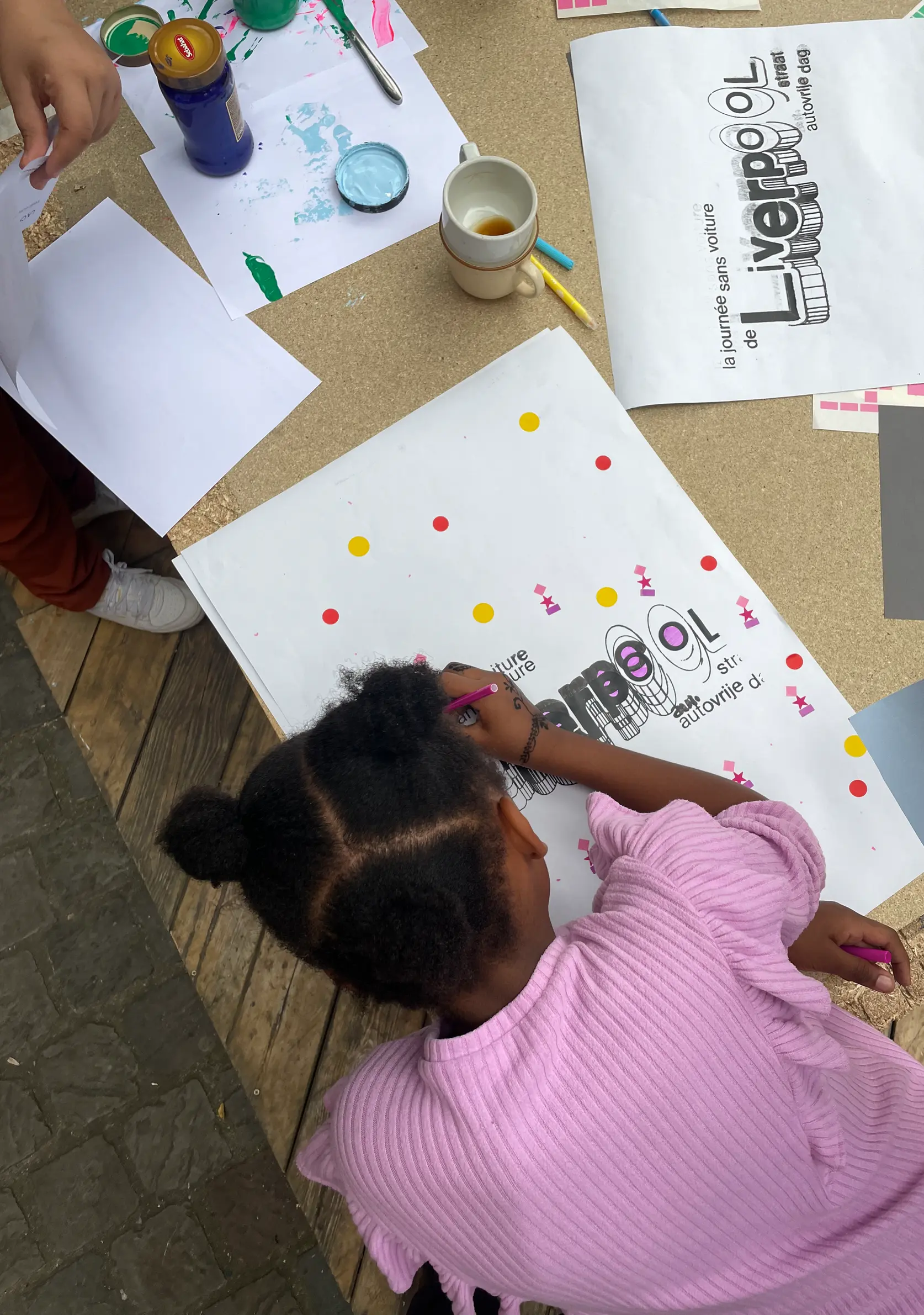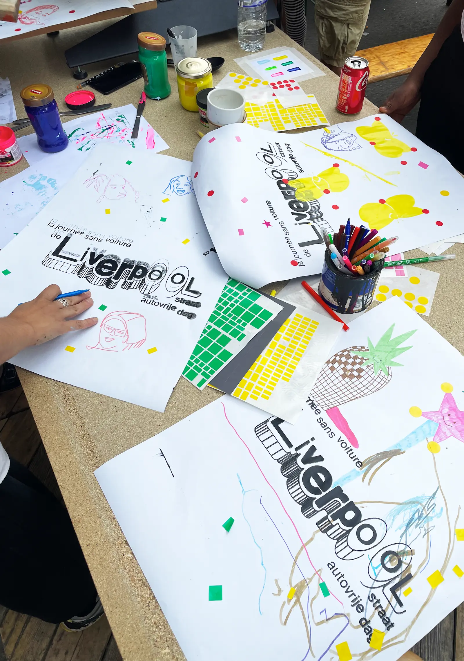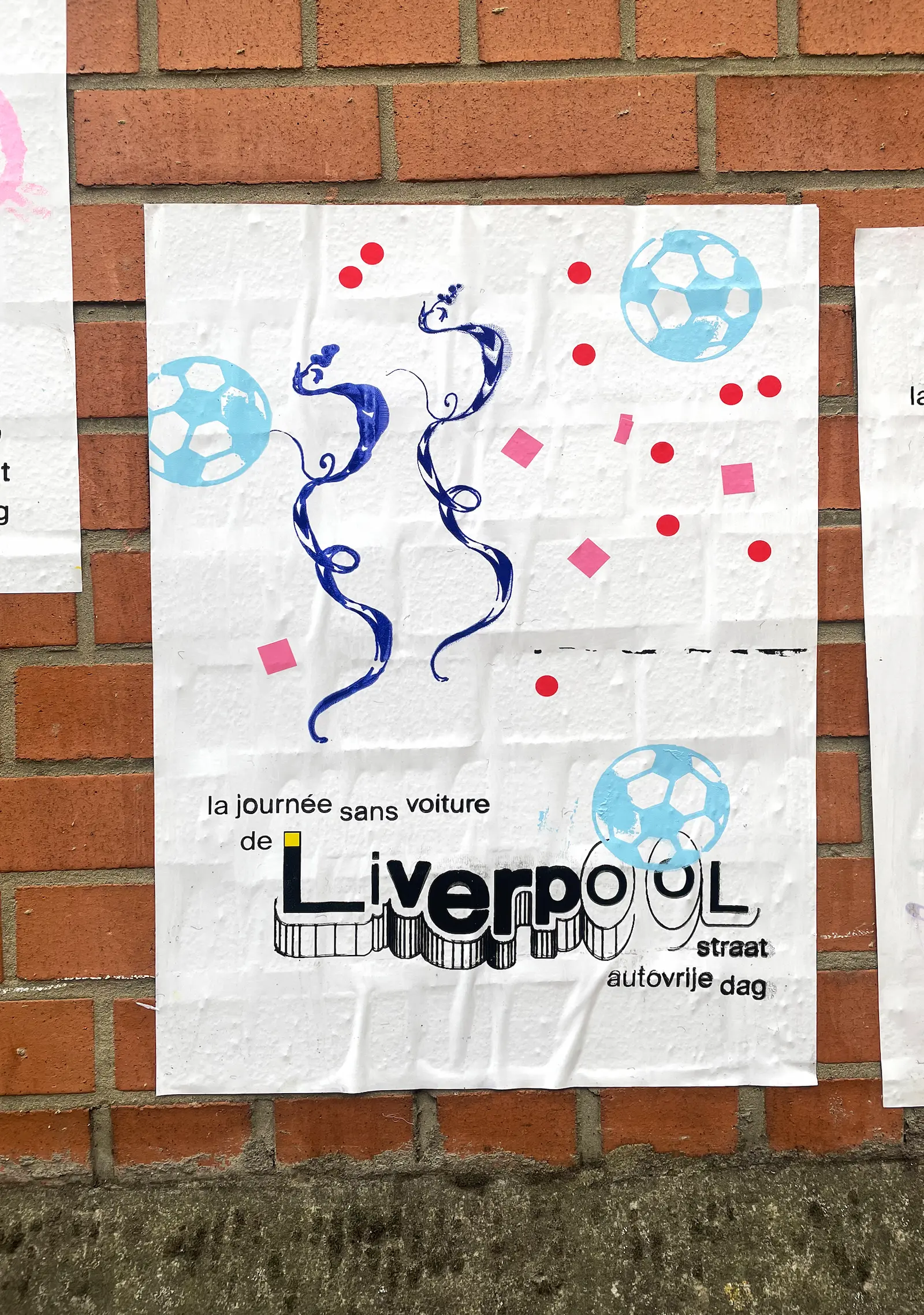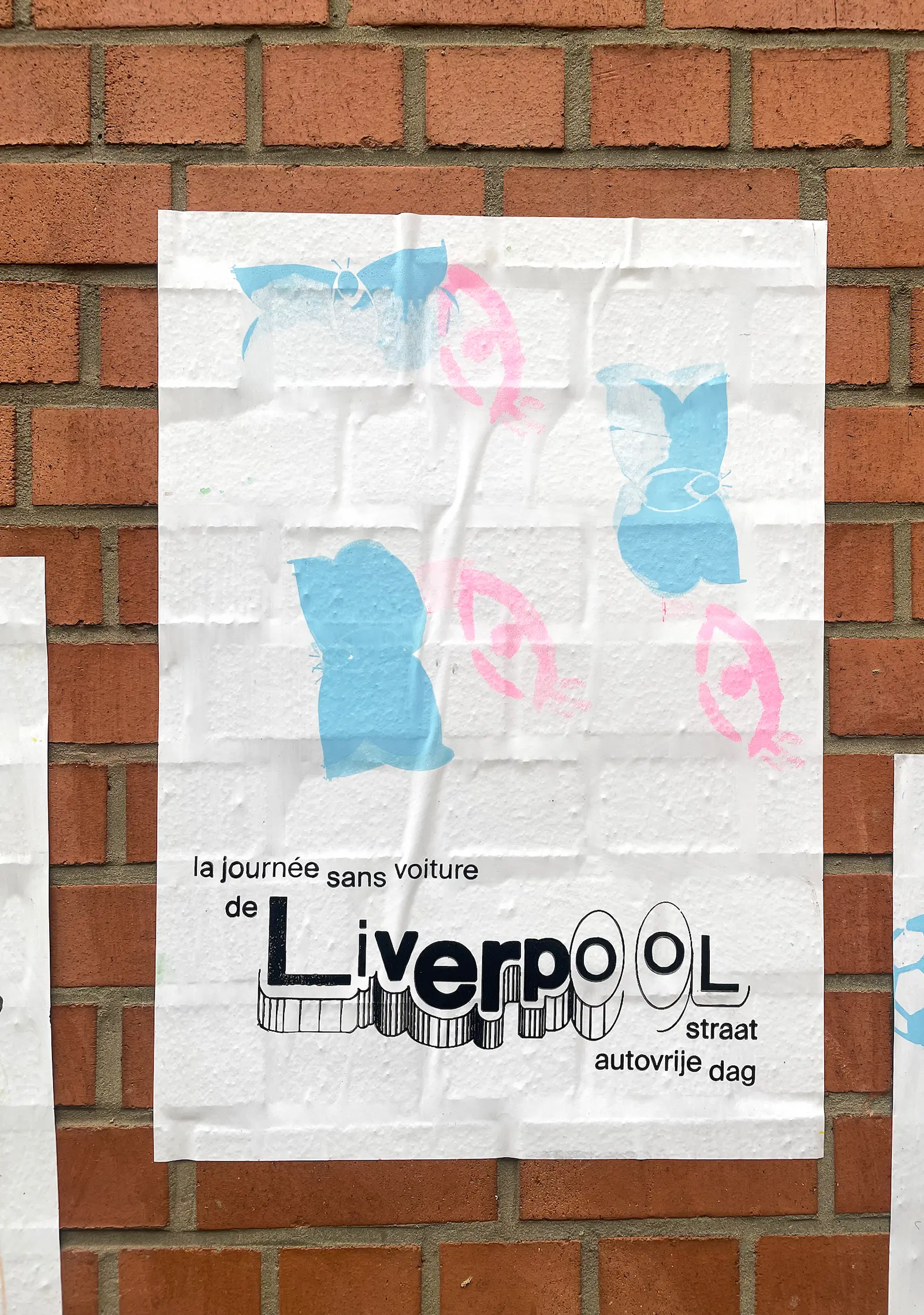 Liverpool car-free day is a public event in the neighboorhood of Cureghem (Belgium). At this occasion, people and communities throw a real block party! A poster is made to gathered all the associations and people involved in this event, among Gilbard collective. During its last edition, a series of screenprinting posters where made in collaboration with the neighbors and later been exposed on the street.